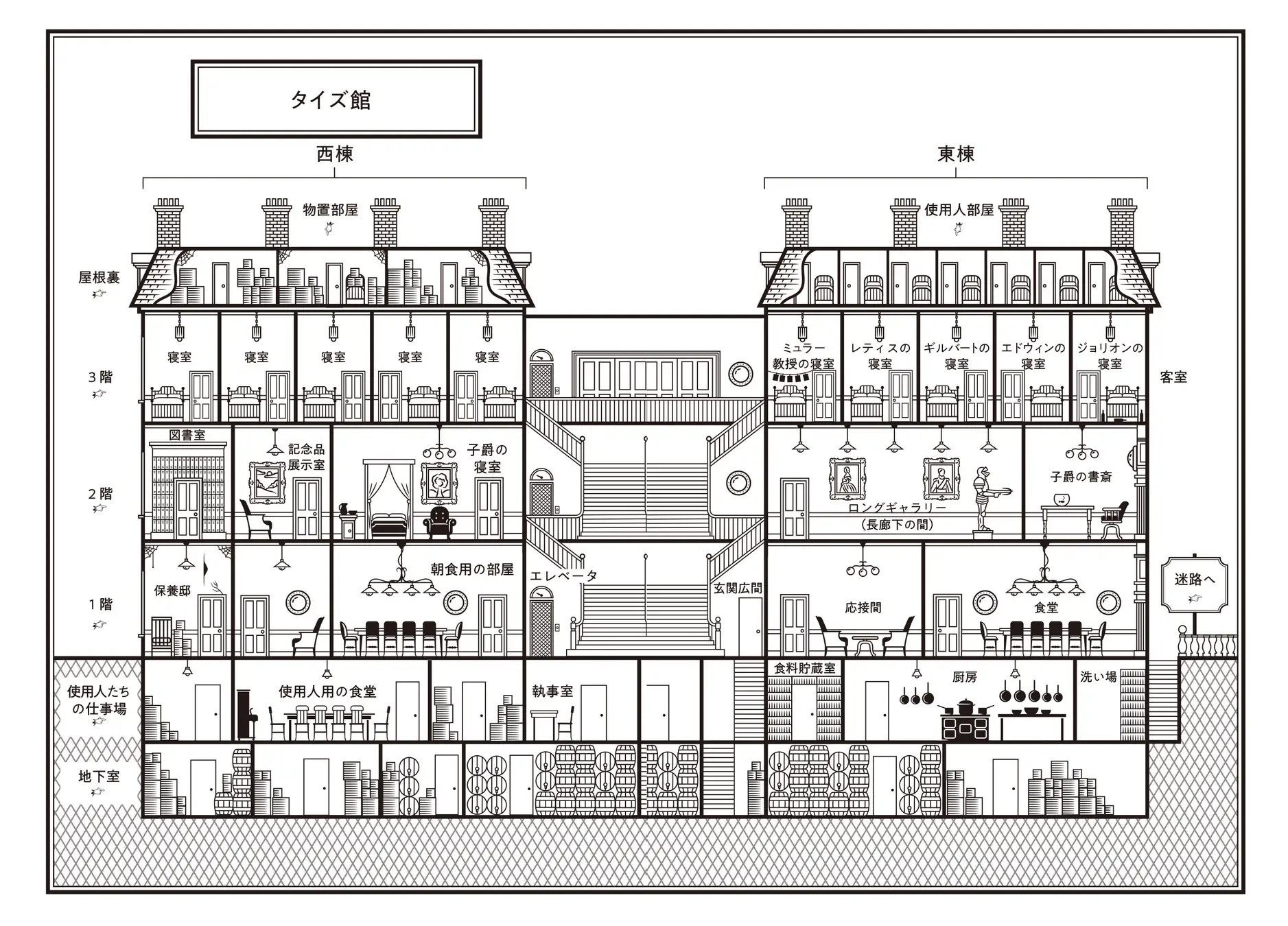 とくにいいのは、タイズ館が単なる背景ではなく、登場人物たちの心理を映す装置になっているところだ。外の世界を恐れて、自分たちで館を塞いでしまう。