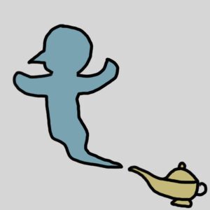 「これはこれは御主人様、ワタクシはランプの魔人でございます。どんな願いでもたちどころに叶えて差し上げましょう。ただし願いは三つまでですよ」