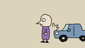 そう思って横断歩道をわたっていると、急に角から車があらわれ、青年の鼻先で止まった。